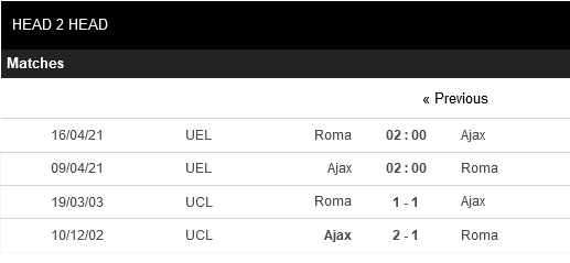 Ajax đã ghi bàn trong hiệp 1 của 4 trận đấu gần nhất. 5/6 trận đấu có sự góp mặt của Roma gần đây cũng xuất hiện bàn thắng trong hiệp một. Tuy nhiên, tỉ lệ ghi bàn của Ajax lẫn Roma trong hiệp một tại Europa League mùa này đều rất thấp. Ajax là 22% còn Roma chỉ là 35%.