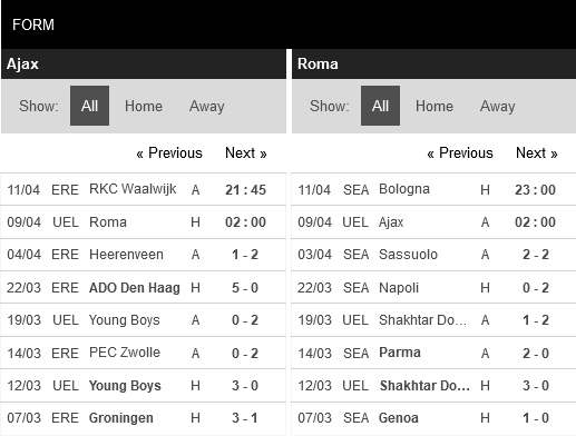 Trước chuyến làm khách tới Amsterdam, Roma là một trong những đội bóng chơi tốt nhất ở Europa League. Họ dễ dàng dẫn đầu bảng A và giành được 4 chiến thắng trong 4 trận đấu ở vòng knock-out trước Braga và Shakhtar Donetsk.