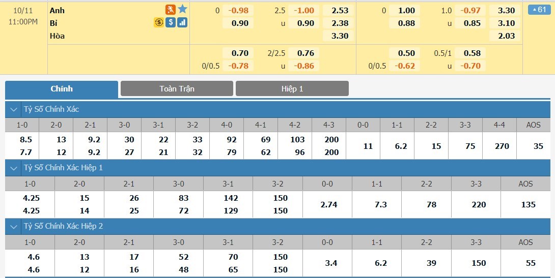 Dự đoán tỷ số Hiệp 1: 0-1