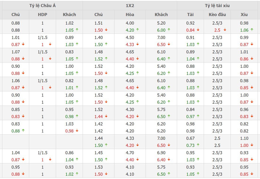 Chu kỳ lên xuống tỷ lệ kèo Arsenal vs West Ham