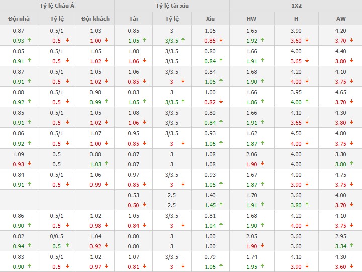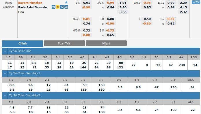Chu kỳ lên xuống tỉ lệ kèo Bayern Munich vs Paris Saint-Germain