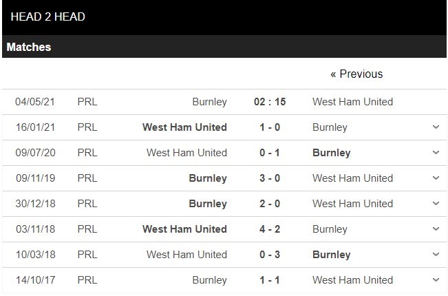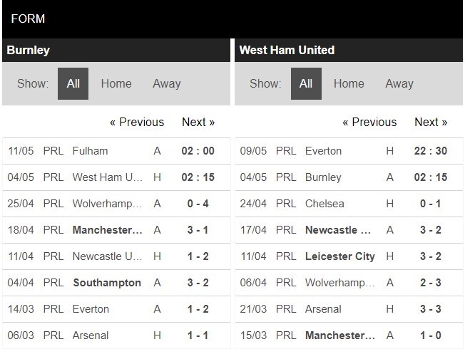 Chu kỳ lên xuống tỷ lệ kèo Burnley vs West Ham