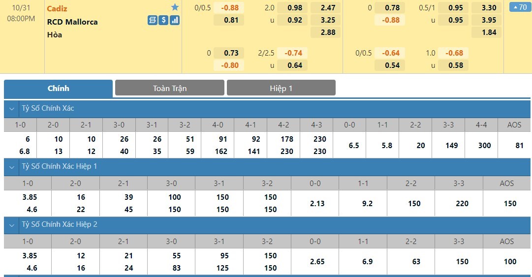 Mặc dù tỷ lệ kèo chấp mà nhà cái đưa ra chỉ là chủ nhà chấp 0.25 trái, một con số không quá lớn nhưng việc lựa chọn Cadiz vẫn là 1 quyết định tương đối mạo hiểm. Rõ ràng xét về phong độ thì họ chẳng hề tạo ra ưu thế nào so với đội khách. Hơn nữa trên BXH thì Mallorca còn đang xếp trên Cadiz tới 5 bậc. Vì vậy ở kèo đấu này thì Mallorca sẽ là lựa chọn hợp lý hơn.
