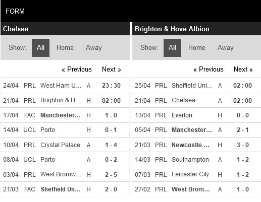 Chelsea có cơ hội đánh chiếm vị trí thứ 4 khi đối đầu với Brighton. Đối thủ cạnh tranh trực tiếp của họ là West Ham vừa nhận thất bại trước Newcastle. Do vậy, Chelsea chỉ cần không thua Brighton là có thể vượt mặt kình địch cùng thành London này.
