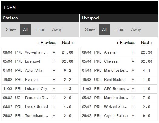 Bên kia chiến tuyến, Liverpool đã thể hiện chẳng khá khẩm hơn chút nào khi chỉ có được 4 thắng lợi ở 10 trận đấu gần đây nhất trên mọi đấu trường, còn lại là việc đội bóng này có 1 trận hòa và đã phải nhận 5 thất bại. Đoàn quân của HLV Jurgen Klopp vừa qua đã “thảm bại” với tỉ số 1-4 khi đối đầu với Man City ở trận gần nhất. Như vậy, Liverpool đã để thua 3 trận đấu liên tiếp. Với tình hình phong độ như hiện tại thì rất khó để trông chờ vào một kết quả có lợi dành cho Lữ đoàn đỏ trong chuyến hành quân sắp tới đến sân Stamford Bridge.