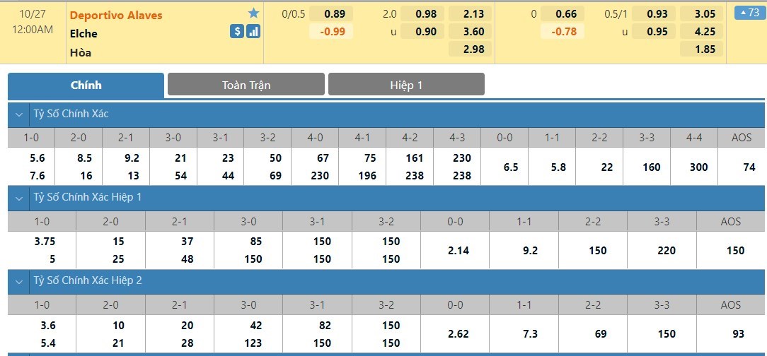 Tỷ lệ kèo cá cược bóng đá trận Deportivo Alaves vs Elche