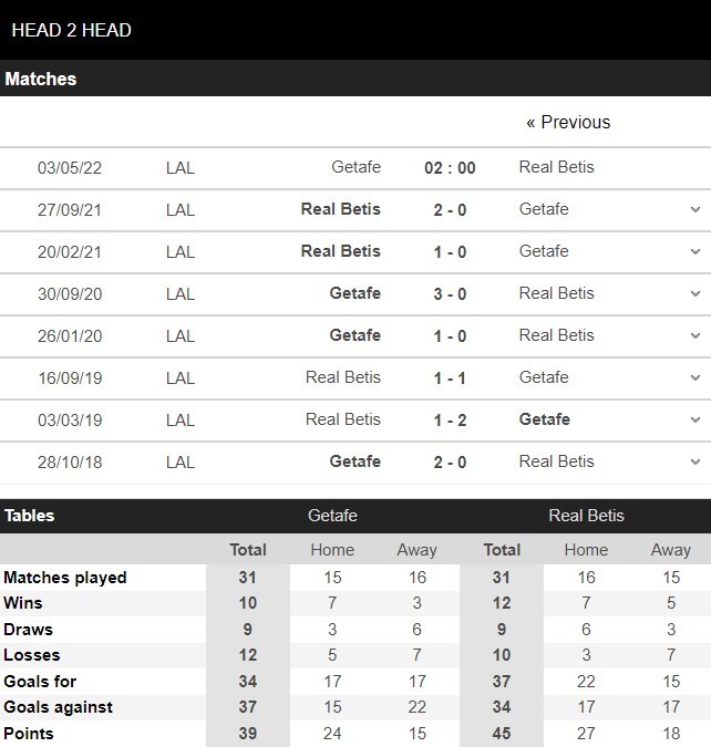 Getafe mới là đội đang có thành tích hiệp 1 tốt hơn so với Betis trong 10 lần chạm trán gần đây, họ mới chỉ để đối phương vượt lên dẫn trước 1 lần và nhận về đúng 1 bàn thua tổng cộng. Với lợi thế sân nhà cùng chiến thắng có được trước Vigo, khả năng nhập cuộc của Getafe sẽ lại được đánh giá cao trong màn đọ sức sắp tới.