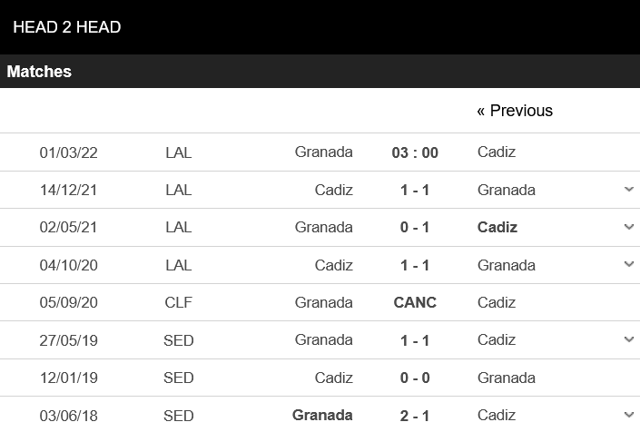 Cadiz đang đứng ở vị trí thứ 19 và kém vị trí an toàn của chính Granada 4 điểm. Ở vòng đấu trước, Cadiz đã cầm hòa Getafe trên sân nhà với tỉ số 1-1.