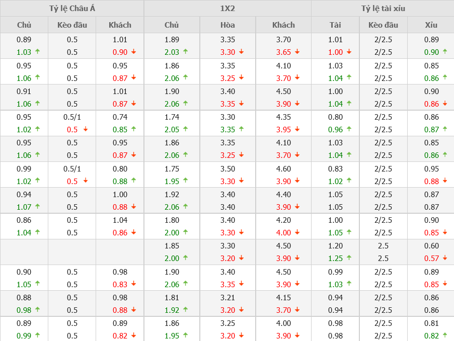 Kèo tài xỉu 2,25 bàn cho thấy trận đấu tới không dễ có nhiều bàn thắng được ghi. Chỉ 1/7 trận đối đầu gần nhất của 2 đội nổ tài. Số trận cho kết quả xỉu của 2 đội mùa này cũng nhiều hơn. Vì vậy, trận đấu tới có thể không xuất hiện nhiều hơn 2 bàn thắng.