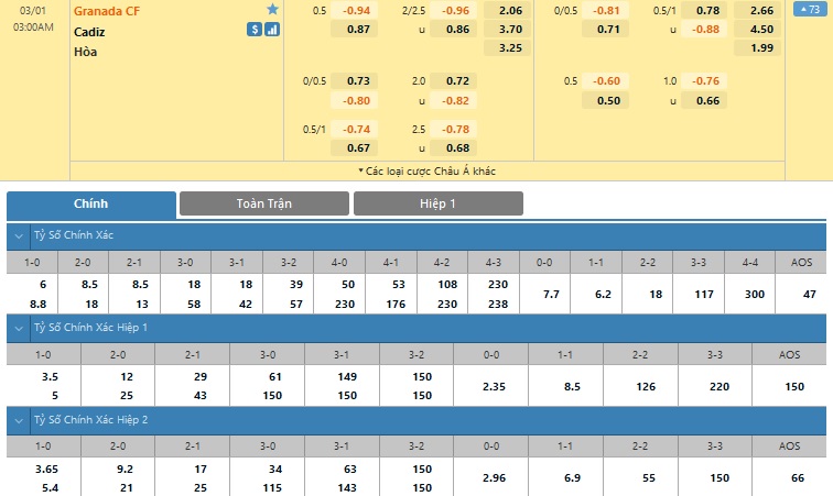 Xem tỷ lệ kèo cá cược bóng đá trực tuyến Granada vs Cadiz
