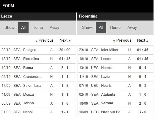 Chạm trán với Fiorentina ở trận đấu tới đây chắc chắn vẫn sẽ có nhiều khó khăn với Lecce dù rằng họ là đội được chơi trên sân nhà. Dẫu vậy thì không phải là không có những cơ hội để đoàn quân của HLV Marco Baroni mang về cho mình 3 điểm trọn vẹn khi mà đối phương đang thi đấu không tốt.