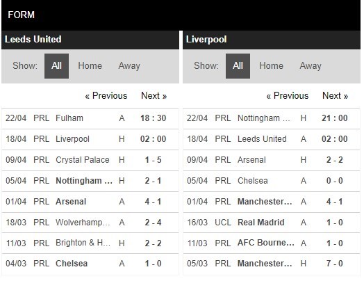 Thống kê phong độ Leeds United vs Liverpool