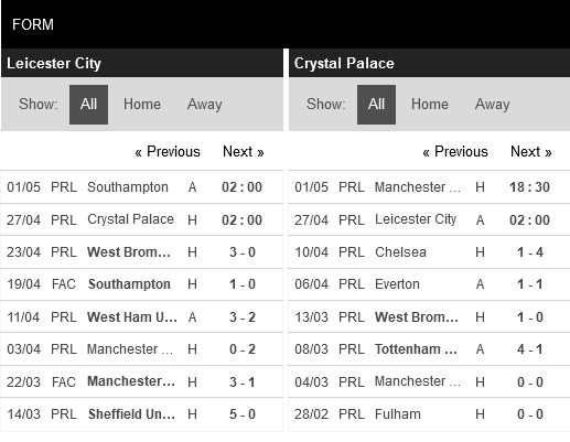 Tinh thần của Leicester đang lên rất cao sau khi giành vé lọt vào trận chung kết FA Cup. Việc họ nới rộng khoảng cách với nhóm bám đuổi trong cuộc đua top 4 cũng giúp cho đoàn quân của Rodgers giải tỏa tâm lý phần nào. Và họ hoàn toàn có thể hướng tới 3 điểm trọn vẹn trước Crystal Palace ở trận đấu tới.