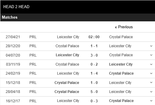 14/21 trận gần nhất của Leicester có tối thiểu 1 lần lưới rung hiệp 1. 3/4 trận gần đây của Palace cũng có điều tương tự xảy ra.