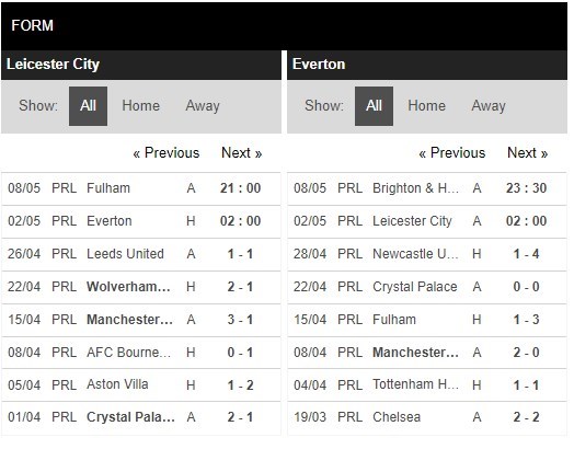 Thống kê phong độ Leicester vs Everton