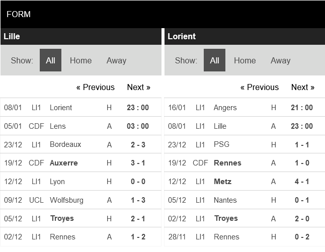 Lille đạt thành tích hiệp 1 không tồi ở mùa giải này với 8 trận thắng và 6 trận hòa sau 19 trận. Nhưng Lorient cũng đá hiệp 1 không tệ với 7 thắng và 8 hòa.