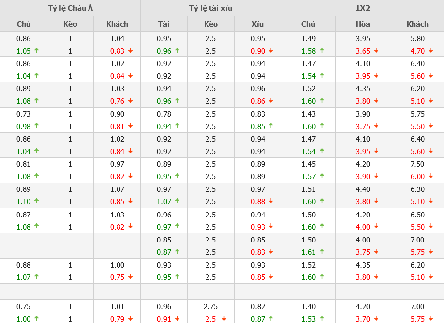 Kèo tài xỉu 2,5 bàn cho thấy trận đấu tới chưa chắc có nhiều bàn thắng được ghi. 3/5 trận gần nhất của 2 đội có kèo 2,5 bàn đều về xỉu. Chính vì thế, trận đấu tới cũng chưa chắc có nhiều bàn được ghi.