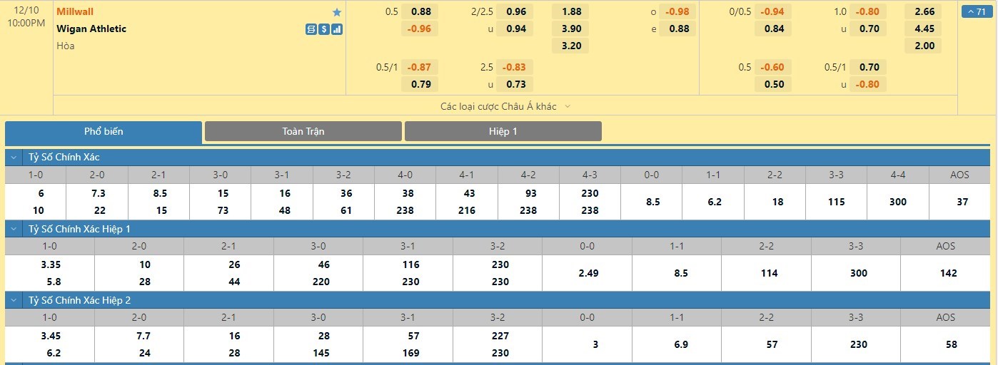 Tỷ lệ kèo cá cược bóng đá trận Millwall vs Wigan