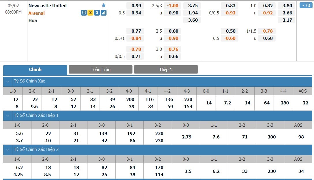 Trong khi đó, Arsenal đang có chuỗi 7 trận liên tiếp rời xa thánh địa Emirates của mình mà không thua. Đáng chú ý là việc đả bại Slavia Prague tới 4-0 tại tứ kết UEFA Europa League. Mặc dù mới thất bại 0-1 trước Everton tại vòng đấu gần nhất, nhưng trước một Newcastle bị đánh giá yếu hơn thì thầy trò HLV Mikel Arteta tự tin có được 3 điểm để cải thiện thành tích ở mùa này. Kèo chấp nhà cái đưa ra là -1/2 trái cho đội khách cũng không có gì khó với những ai chọn Arsenal ở trận này.