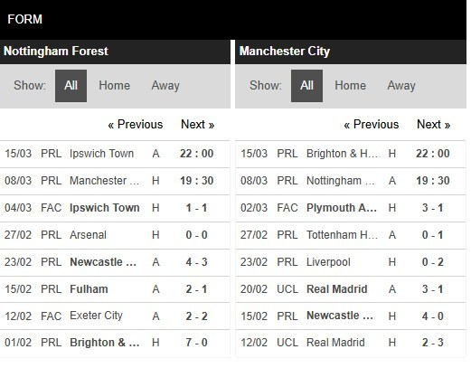 Đón tiếp nhà ĐKVĐ Manchester City rõ ràng là một thử thách nặng ký dành cho đội chủ nhà Nottingham. Nhìn vào thành tích đối đầu trực tiếp giữa hai đội, Manchester City vẫn là những người chiếm ưu thế áp đảo. Qua 5 lần gần nhất hai đội đọ sức với nhau, Manchester City thắng tới 4 trận. Mục tiêu của đội chủ nhà trong trận này có lẽ cũng chỉ là cố gắng hướng đến một kết quả hòa mà thôi. Ưu tiên hàng đầu của họ sẽ dành cho nhiệm vụ phòng ngự. Trong cả 5 lần gần nhất hai đội đối đầu thì trận nào cũng có bàn thắng xuất hiện ngay hiệp 1.