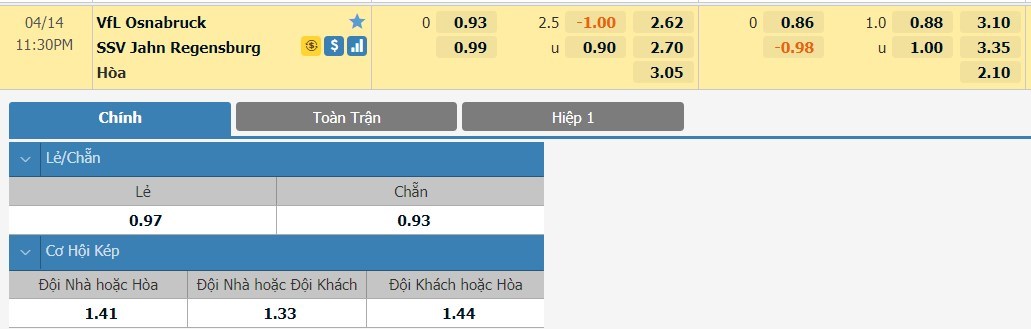 Tỷ lệ kèo cá cược bóng đá trực tuyến trận Osnabruck vs Jahn Regensburg