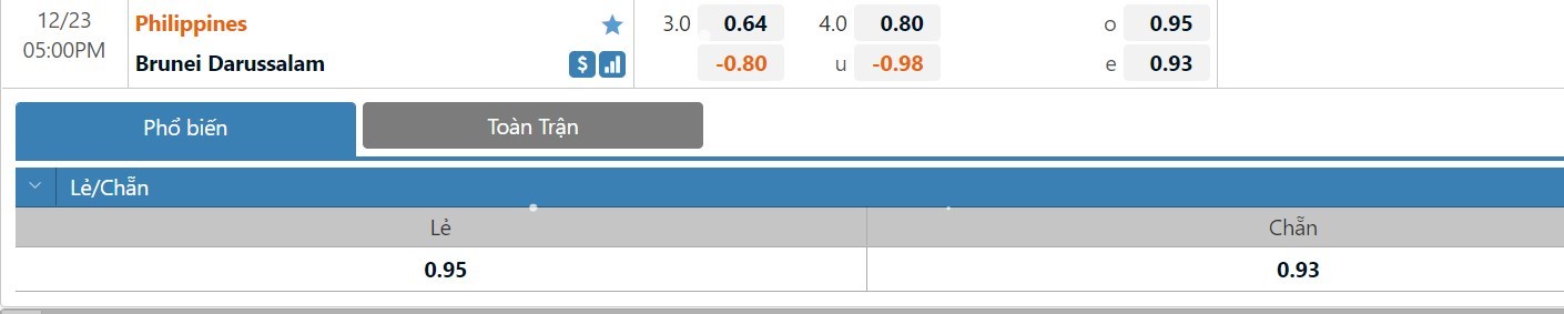 Xem tỷ lệ kèo cá cược bóng đá trực tuyến Philippines vs Brunei