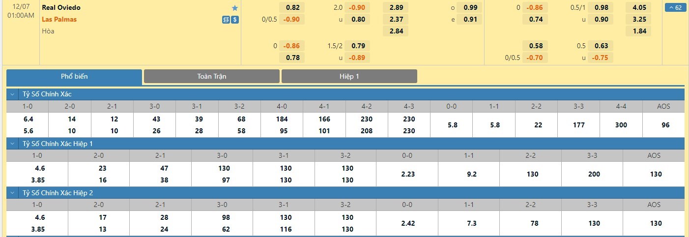 Tỷ lệ kèo cá cược bóng đá trận Real Oviedo vs Las Palmas