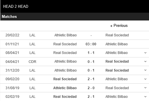 Thống kê đối đầu Real Sociedad vs Athletic Bilbao
