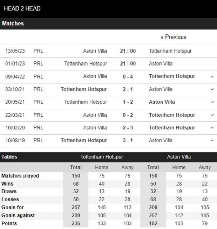 Trong 5 trận đấu gần nhất đôi bên chạm trán nhau trực tiếp, Tottenham đã có 5 trận đấu mang về được cho mình ít nhất là 1 bàn thắng trong hiệp đấu đầu tiên. Còn với Aston Villa, đội bóng này đã có 2 lần làm được điều này trong 45 phút đầu tiên. Với tỷ lệ kèo hiệp 1 là Tottenham -1/4 trái thì người chơi nên tin tưởng vào đội chủ nhà trận này.