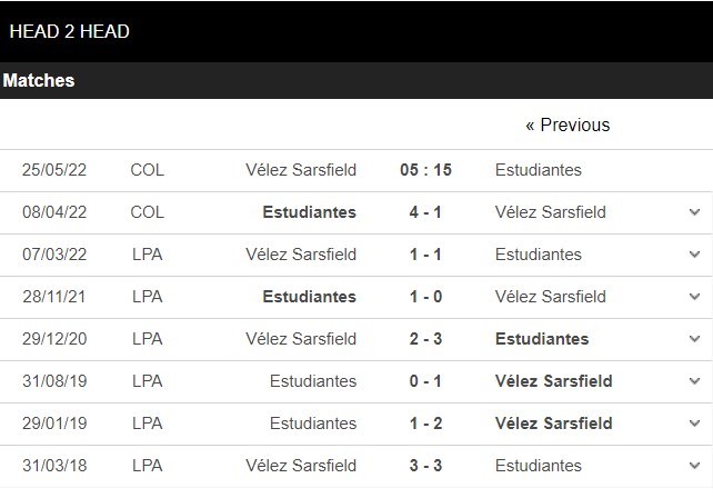 Thống kê đối đầu Velez Sarsfield vs Estudiantes