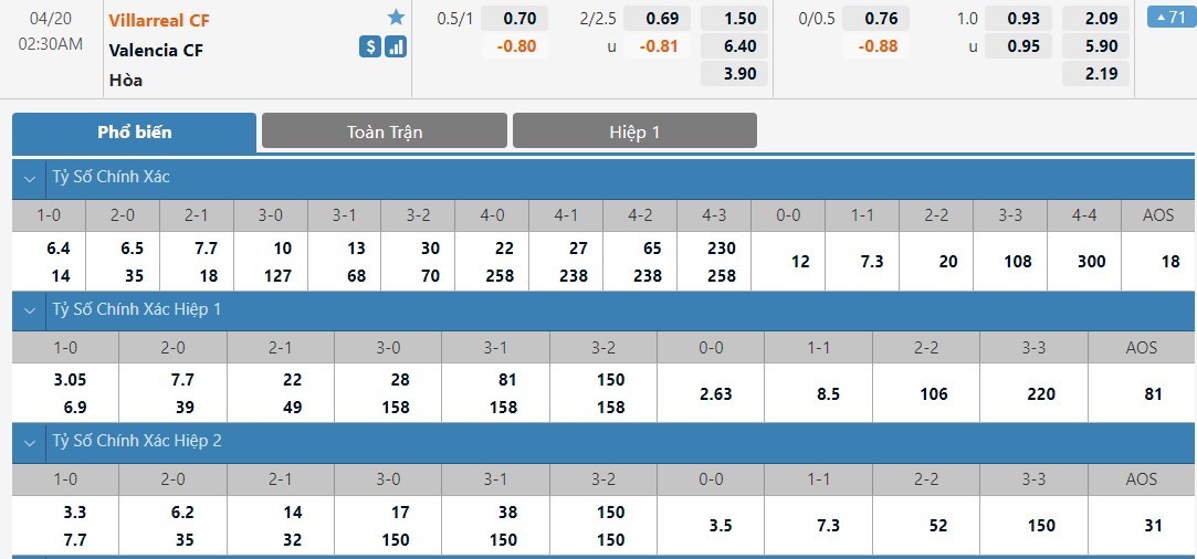 Theo như kết quả thống kê ở 5 trận ra quân gần nhất thì chủ nhà chỉ có 2 lần nổ súng trong khoảng thời gian 45 phút đầu trận. Trong khi đó phía đối diện, những vị khách thậm chí không có nổi 1 lần làm được điều đó. Vậy nên khả năng hiệp 1 của cuộc đối đầu tới xuất hiện bàn thắng là không cao. Không quá khi nói rằng đội khách chính là đối thủ mà chủ nhà ngại chạm mặt bậc nhất ở La Liga. Thống kê cho thấy ở 5 lần gần nhất 2 đội gặp nhau thì tàu ngầm vàng chỉ có được 1 chiến thắng, trong khi đó bầy dơi lại có tới 4 lần ca khúc khải hoàn. Vậy nên ở kèo đấu này thì Valencia vẫn sẽ là lựa chọn an toàn hơn.