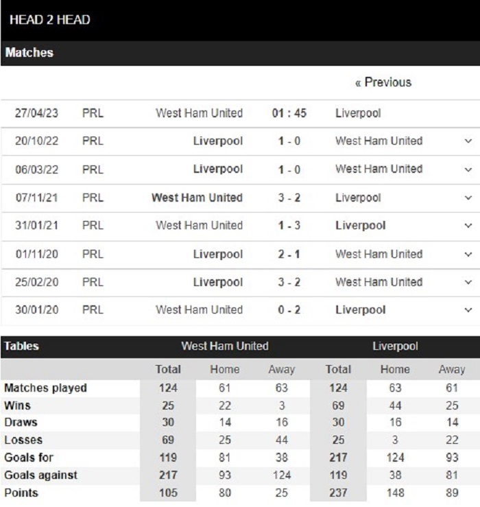 Theo chuyên gia Lucky88, West Ham vẫn thường khớp trong những lần đụng độ Liverpool. Có thể vào thời điểm hiện tại Liverpool không có được trạng thái phong độ tốt nhất nhưng họ vẫn được nhà cái đánh giá cao hơn rất nhiều so với chủ nhà. Chưa kể là trong 2 lần so tài gần nhất thì phần thắng đều thuộc về Lữ đoàn đỏ.